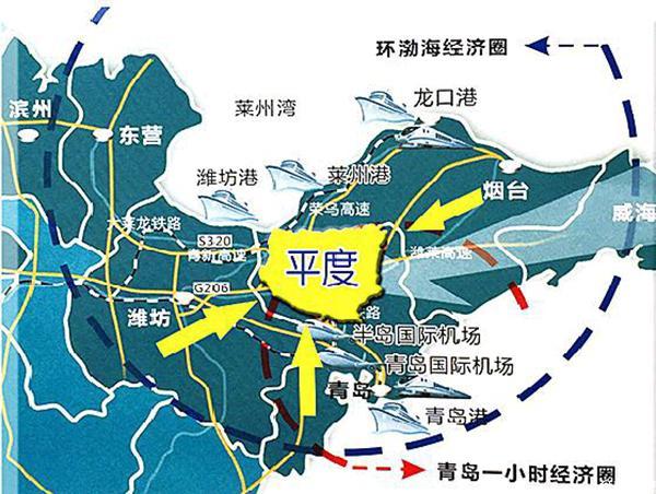 平度區位優越,得天獨厚,是山東半島連接內陸腹地的交通咽喉,處于半島藍色經濟區城市群的中心位置,融入藍色經濟區龍頭城市;濰坊“1小時經濟圈”。扼守港區、國際機場等交通要塞,鏈接鐵路膠濟線、德龍煙線的海青鐵路開通通車,5條國家級高速公路和多條一級公路穿境而過,到青島僅需40分鐘,赴北京只需5小時。形成了山東半島四通八達的立體交通網絡。成為青島連接京津地區的首選路線。