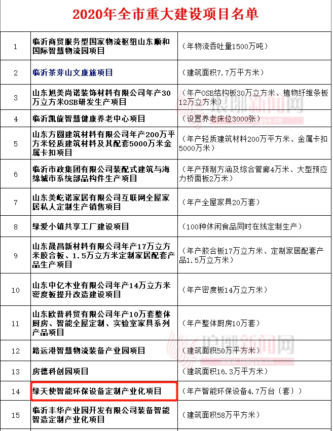熱烈祝賀綠天使(臨沂)產業園入列臨沂市重大建設項目