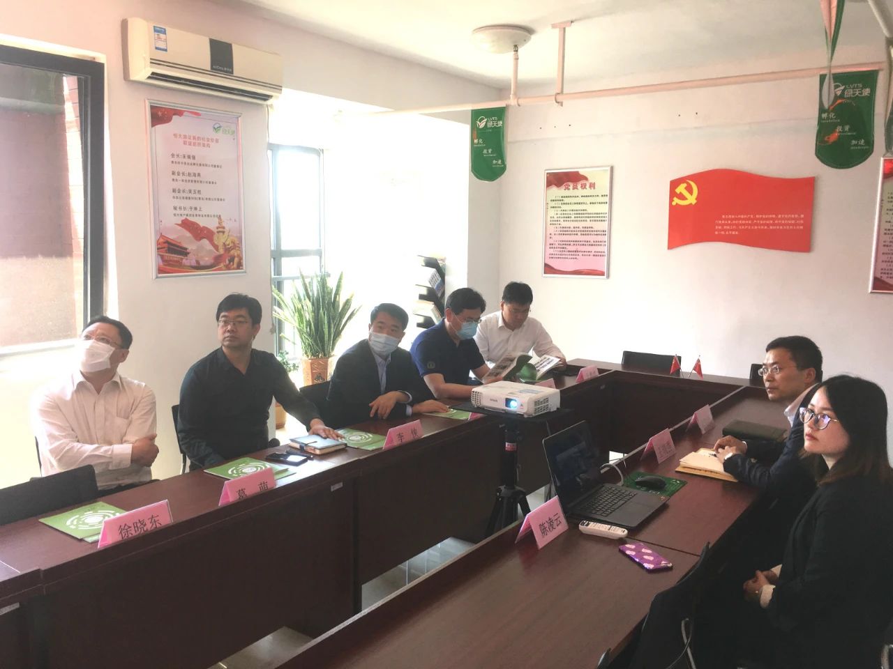 董事長王瑞強(qiáng)對田副書記一行表示熱烈歡迎,并講解了綠天使的發(fā)展歷程、園區(qū)概況、運(yùn)營模式及創(chuàng)業(yè)服務(wù)等。雙方就綠天使的商業(yè)模式、團(tuán)隊(duì)建設(shè)與管理、工作開展與成效等方面進(jìn)行了詳細(xì)的討論,同時(shí)就綠海匯(高密)智能制造產(chǎn)業(yè)園項(xiàng)目具體合作事宜進(jìn)行洽談推進(jìn)。田副書記對綠天使 “孵化+投資+加速+輔導(dǎo)上市”的特色服務(wù)模式表示贊揚(yáng),尤其是綠天使對企業(yè)的專業(yè)的產(chǎn)業(yè)支持和產(chǎn)業(yè)升級(jí)服務(wù)給予了充分關(guān)注。王瑞強(qiáng)總經(jīng)理表示疫情防控期間,我們也要堅(jiān)持一手抓防御,一手推動(dòng)園區(qū)建設(shè),積極做好園區(qū)企業(yè)的服務(wù)及各項(xiàng)保障工作,緊抓、嚴(yán)抓企業(yè)復(fù)工后各項(xiàng)安全工作,與企業(yè)一同攻克難題,共度難關(guān)。