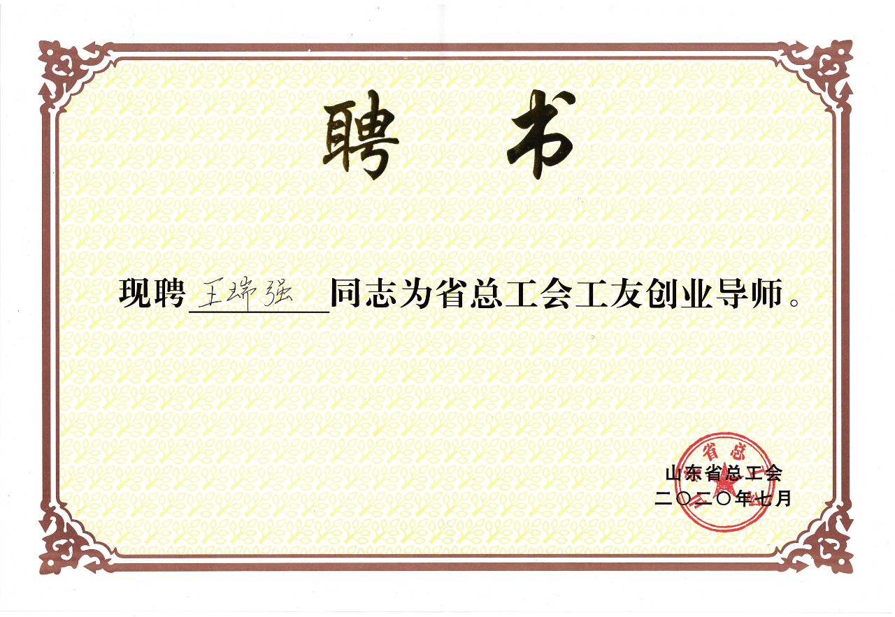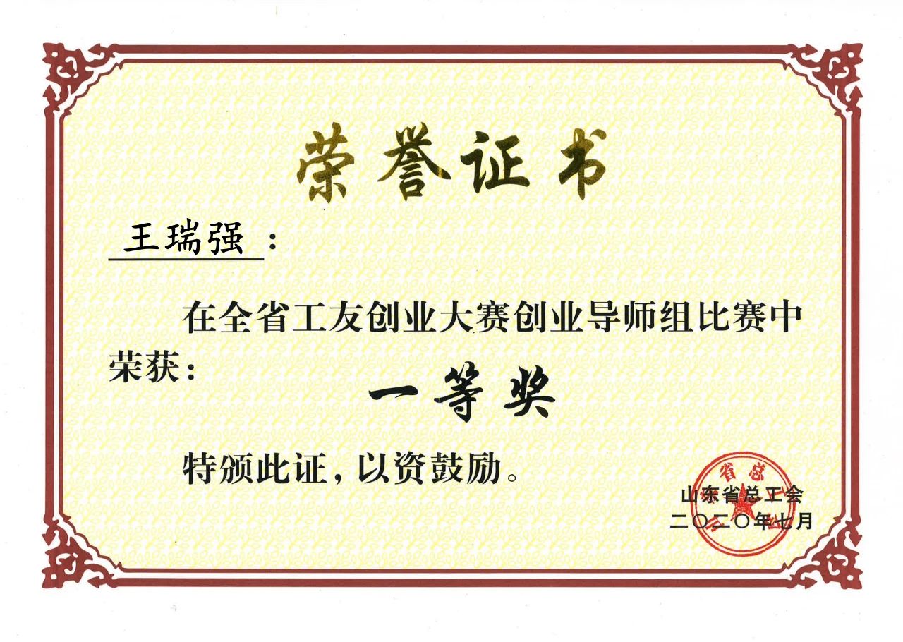 近日,2020全省工友創業大賽暨第五屆山東省創業大賽選拔賽隆重舉行,創新組、創業組、創業扶貧組、返鄉下鄉創業組、創業好導師組等5個組別共產生一等獎9個、二等獎10個、三等獎20個,優秀獎30個。綠天使董事長王瑞強以青島市工友創業大賽第一名的成績參加全省決賽并再次以分數第一的成績榮獲全省大賽創業導師組一等獎,被省總工會聘請為工友創業導師。