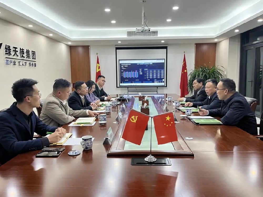 近日,當陽市委常委、常務副市長周斌,高新區黨工委副書記、管委會主任童夢,市政協副主席、市高質量發展研究院院長陳國濤,市科學技術和經濟信息化局局長鄒洋,市國有資本經營投資控股集團有限公司黨委委員、副總經理范安定等一行來訪綠天使集團參觀交流,綠天使集團董事長王瑞強,副總裁黃佳,副總經理黃巖,產業開發事業