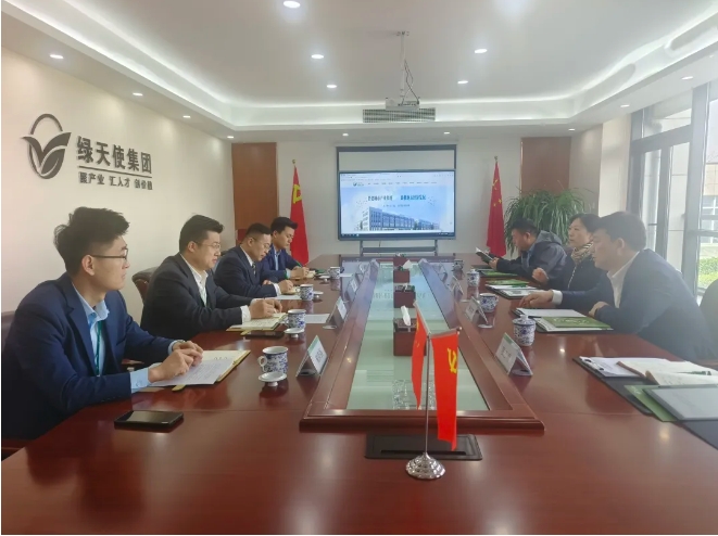 近日,濰坊市金控集團黨委書記、董事長于新華,黨委委員、副總經理劉漢杰,產融新城總經理陳建昌,副總經理梁波、張繼強,國信租賃公司總經理劉樹紅,辦公室副主任李治青,國信股權投資公司執行董事、總經理尹冰,產融新城融資部負責人張弘毅,銷售部負責人劉鵬波等一行來訪綠天使集團參觀交流,綠天使集團董事長王瑞強,總