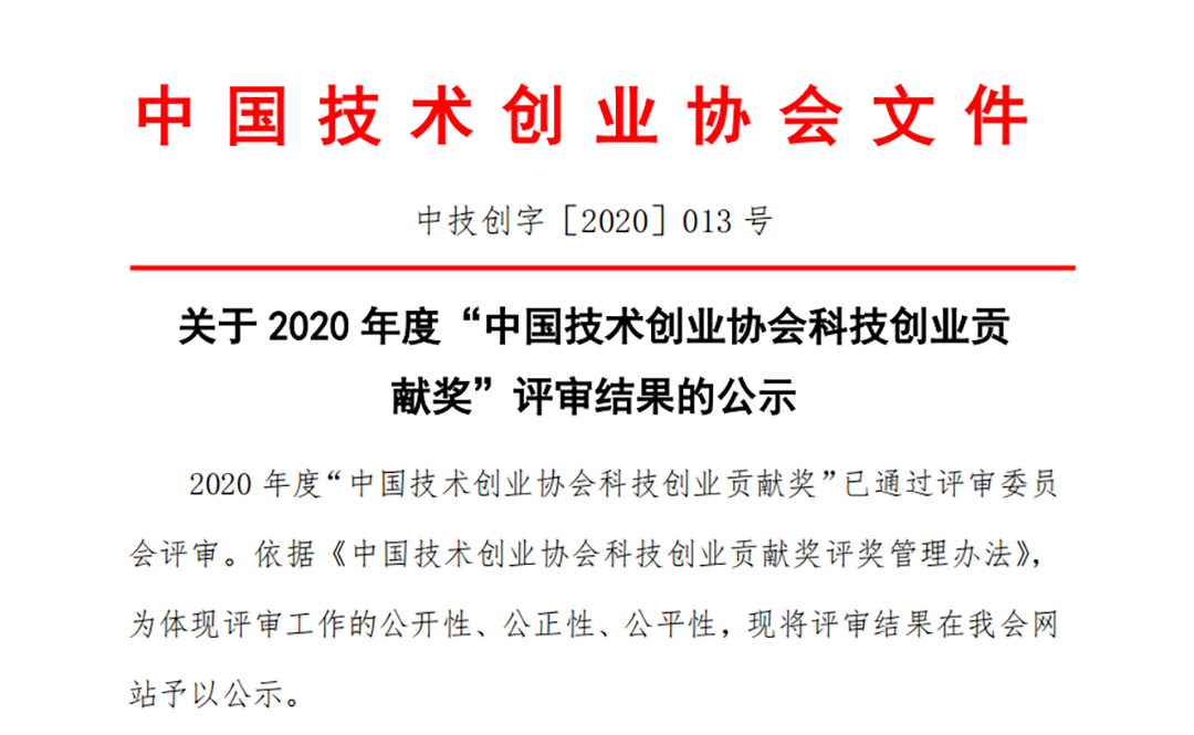 為全面貫徹習近平新時代中國特色社會主義思想,深入落實黨中央、國務院關于科技創新創業的決策部署,宣傳優秀企業科技創新創業典范,發揮其引領帶動作用,近日,中國技術創業協會開展了“2020年科技創業貢獻獎”評選獎勵活動。在此次評選中,綠天使環保創業園榮獲2020年度“科技創業孵化貢獻獎”。