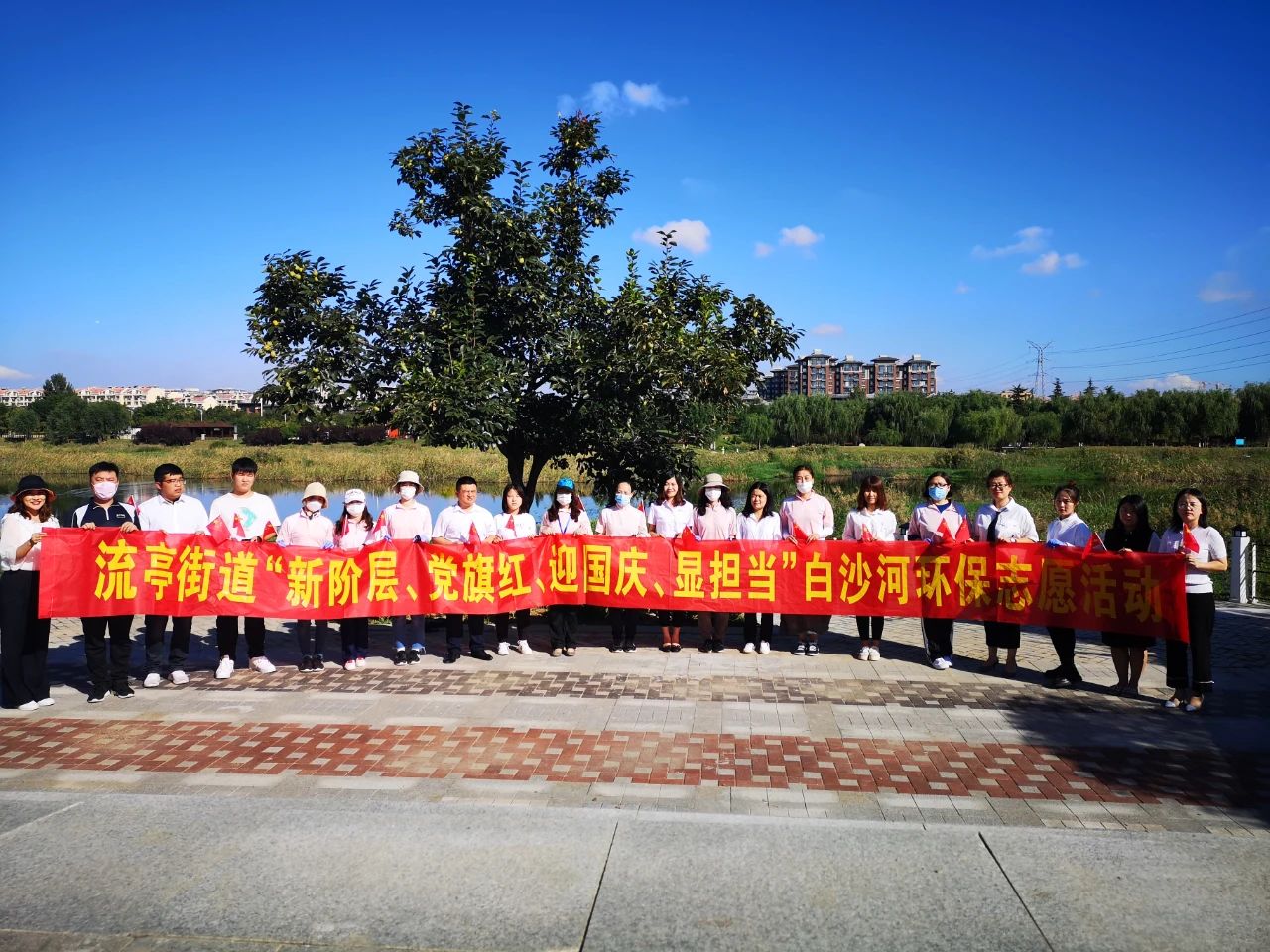 在國慶節、中秋節來臨之際,流亭街道在恒大御瀾國際園區組織新階層人士舉行國旗下的微宣講和“新階層、黨旗紅、迎國慶、顯擔當”白沙河環保志愿活動,綠天使帶領園區企業代表參加此次活動。