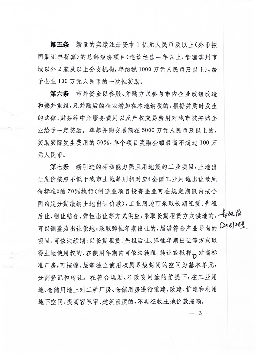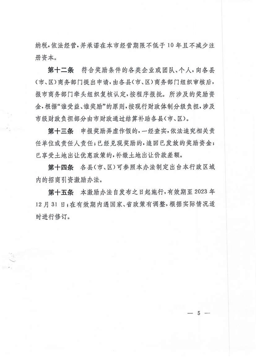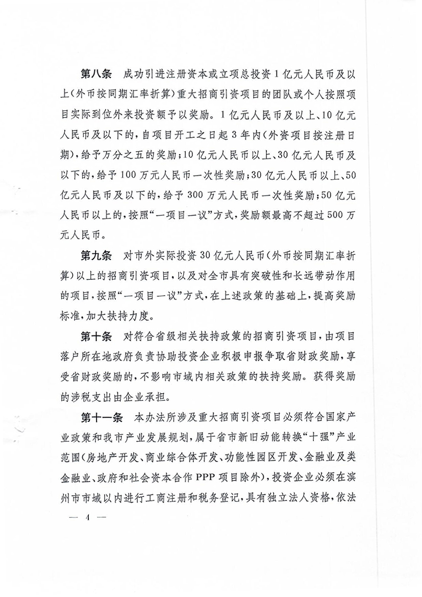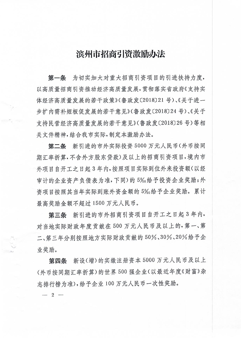濱州市人民政府關(guān)于印發(fā)《濱州市招商引資激勵辦法》的通知